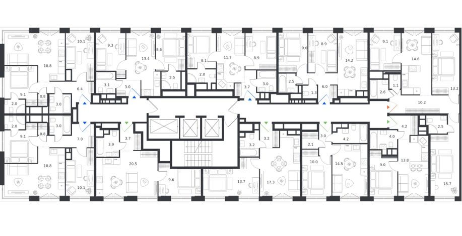 между квартирами светлые холлы. керамогранитный пол, энергоэффективная подсветка и цветовые акценты. никакой монотонности.