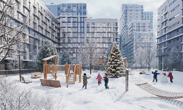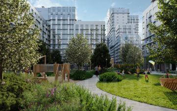 - Безбарьерная среда с многоуровневым ландшафтным парком, детскими площадками, зонами для отдыха и арт-объектами