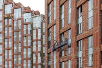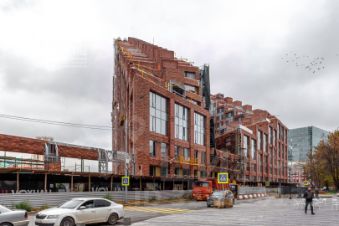 Архитектурный проект бизнес-класса рядом с метро Павелецкая и в 10 минутах от Кремля. Фасады домов с отделкой красно-коричневым клинкерным кирпичом в стиле Loft и панорамным остеклением.