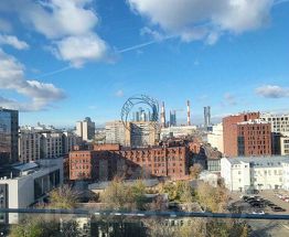 Вид на Новодевичий монастырь, Москва-Сити, улицу Усачева и во внутренний благоустроенный двор.