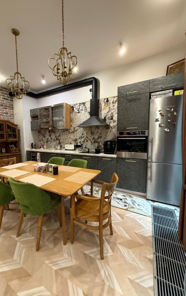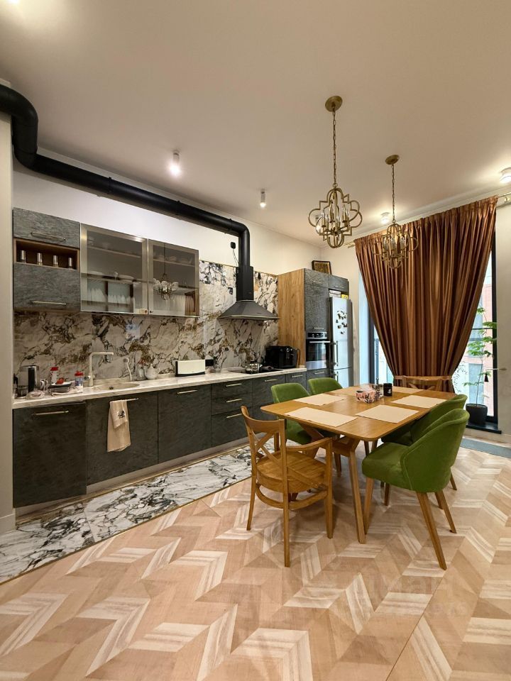 КВАРТИРА: 2-комнатная квартира, общей площадью 71,3 м2, жилой площадью 30,6 (гостиная 16,5 м2, спальня 14,1 м2), кухней + обеденная зона 15,9 м2, высота потолков 3,2 метра, два санузла, есть душевая и ванная, кладовка для хранения много встроенных шкафов. Окна панорамные, радиаторы встроены в пол, хорошая шумоизоляция. Квартира с современным ремонтом, премиальной отделкой по авторскому, дизайнерскому проекту. Использованы материалы: керамогранит, клинкер, напольное пробковое покрытие.