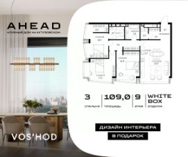 Апартамент в клубном доме премиум-класса AHEAD площадью 109 кв.м. на 9-м этаже с тремя спальнями и просторной кухней-гостиной. Потолок высотой 3,2 м. Панорамные окна выходят на Парк Победы откуда открываются потрясающие виды. Инженерное оснащение выполнено с учетом современных технологических решений: централизованная система кондиционирования VRF с возможностью регулировки температурного режима в каждом помещении, скрытые бесшумные воздуховоды, качественная звукоизоляция, устанавливаются внутрипольные конвекторы. Двухкамерные стеклопакеты Schco с алюминиевым профилем, обладают высокими показателями шумопоглощения и оснащены возможностью проветривания. Стекла покрыты светоотражающим напылением. Отделка White box.