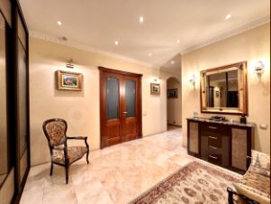 Квартира просторная, светлая и теплая, оборудована кондиционерами Mitsubishi, теплыми полами и бойлером Electrolux. Сохранена удобная планировка от застройщика все стены и мокрые точки на своих местах. Два санузла, три комнаты, кухня-столовая, большая лоджия, просторный холл с вместительным гардеробным шкафом. Дополнительные места хранения (4 секции шкафа до потолка на фото) оборудованы в подъезде на этаже. При отделке квартиры были использованы самые качественные материалы немецкие окна Salamander, каменные подоконники, паркет, межкомнатные двери из натурального шпона, распашная дверь в гостиную высотой 240 см. В стоимость входит вся встроенная мебель со встроенной техникой всё в отличном состоянии.