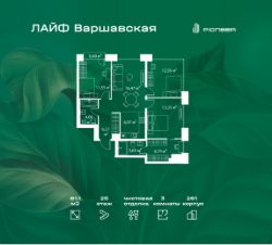 В районе Москворечье-Сабурово продается 3-комнатная квартира площадью 81.1 м². Она расположена на 25 этаже в 261 корпусе нового жилого квартала Лайф Варшавская.