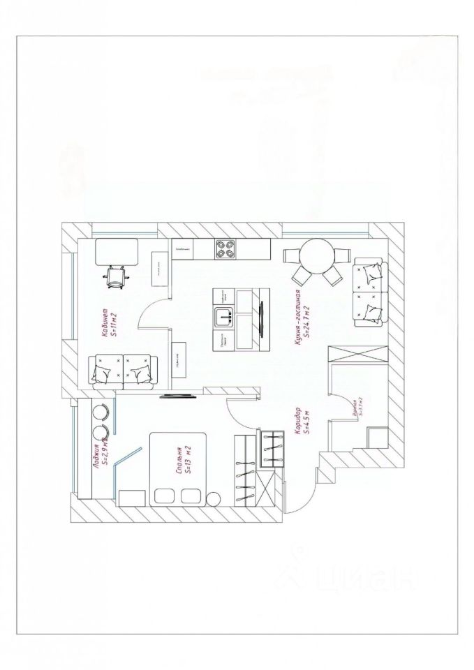 • Планировка: евротрешка (кухня-гостиная + 2 изолированные спальни).