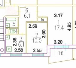 Комнаты 17,4 и 10,0 кв.м - изолированные, светлые, окна выходят на улицу.