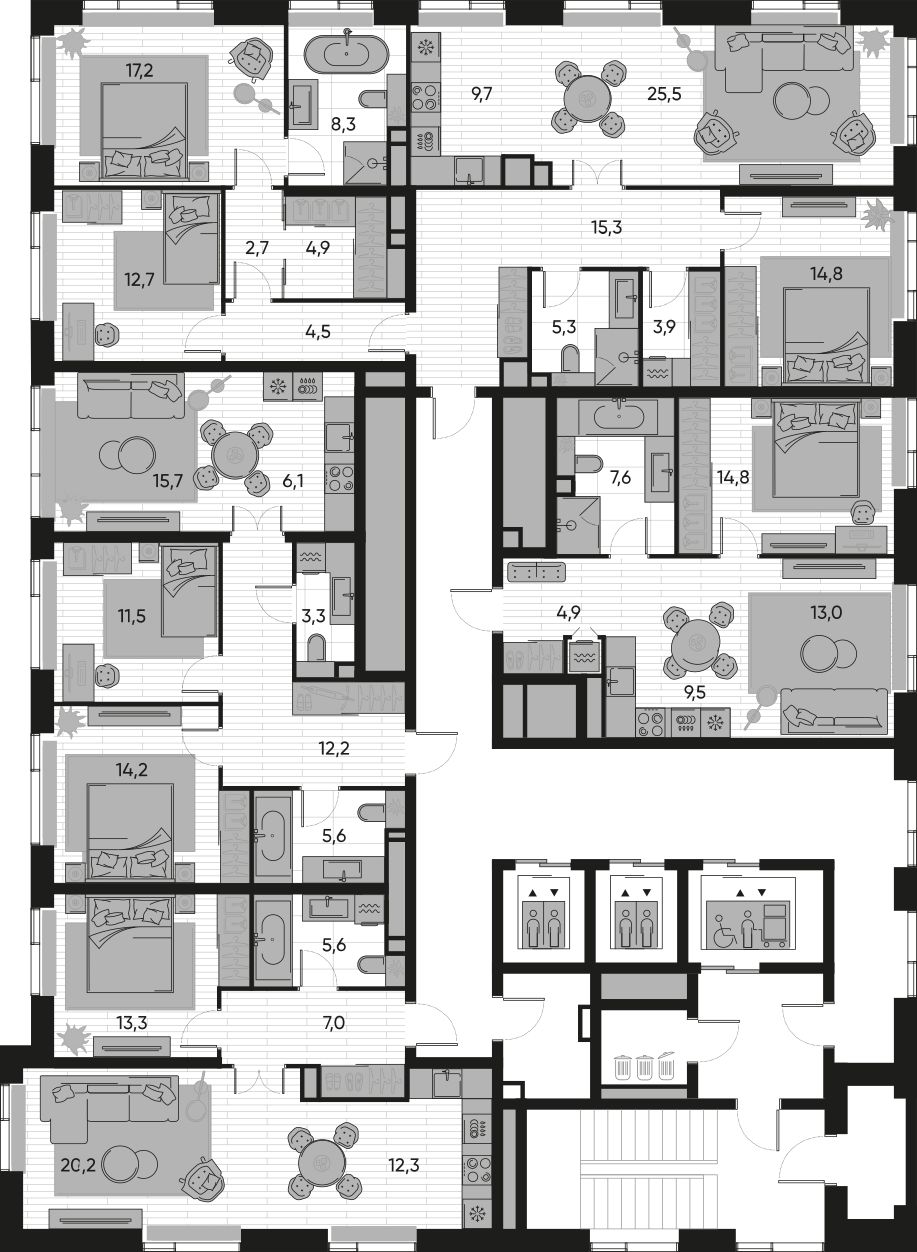 На первых этажах резидентов и гостей встретят лобби с авторским дизайном от Sundukovy Sisters, бюро знаменито своими работами для отелей и ресторанов премиум-класса во всем мире.