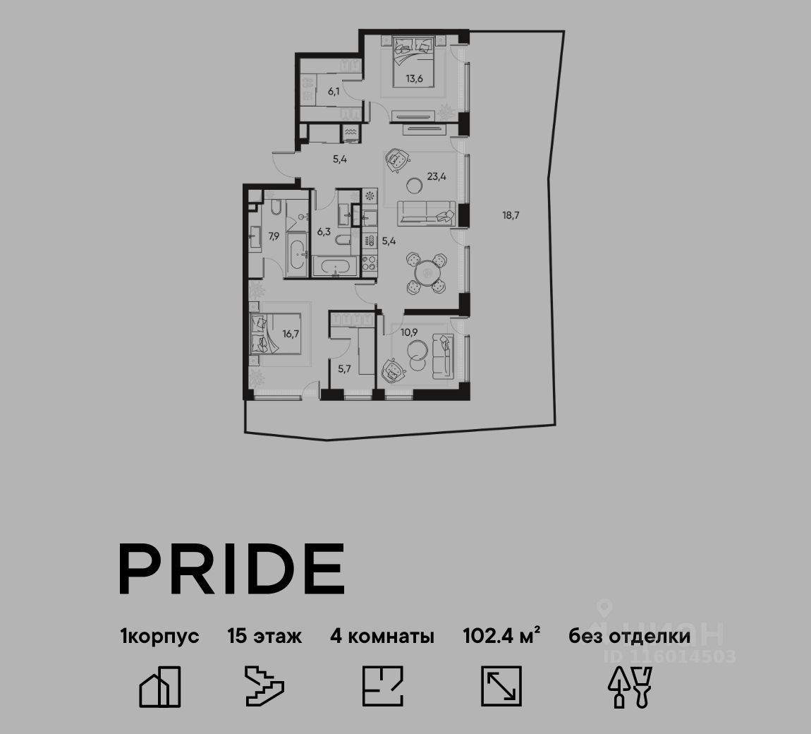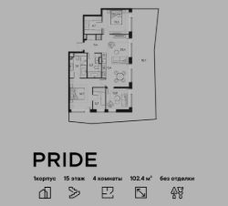 В премиальном жилом квартале PRIDE продается 4-комнатная квартира в 1 корпусе, на 15 этаже, в секции 10. Её общая площадь составляет 102.4 м². Пространство включает 3 уютные спальни 12,7 м², 9,4 м², 15,9 м², просторную кухню-гостиную 27,2 м² и 2 ванные комнаты 7,9 м² и 6,3 м². Ключи в 2026 году.