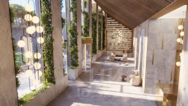 - Интерьерная концепция парадных Гарден-лобби обыгрывает тему единения с природой - активное использование натурального дерева, природного камня, вертикального озеленения