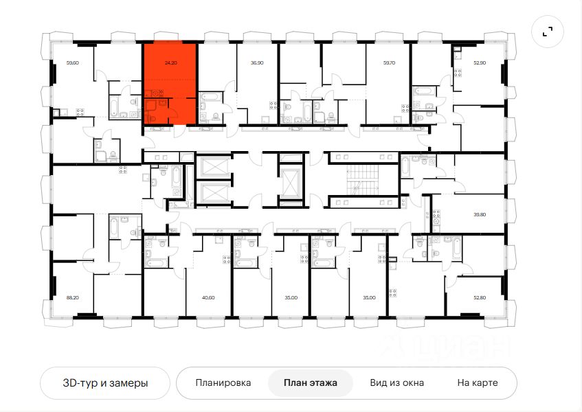В продаже студия на 6 этаже в корпусе 8, секция 5 проекта ПИК Holland Park.