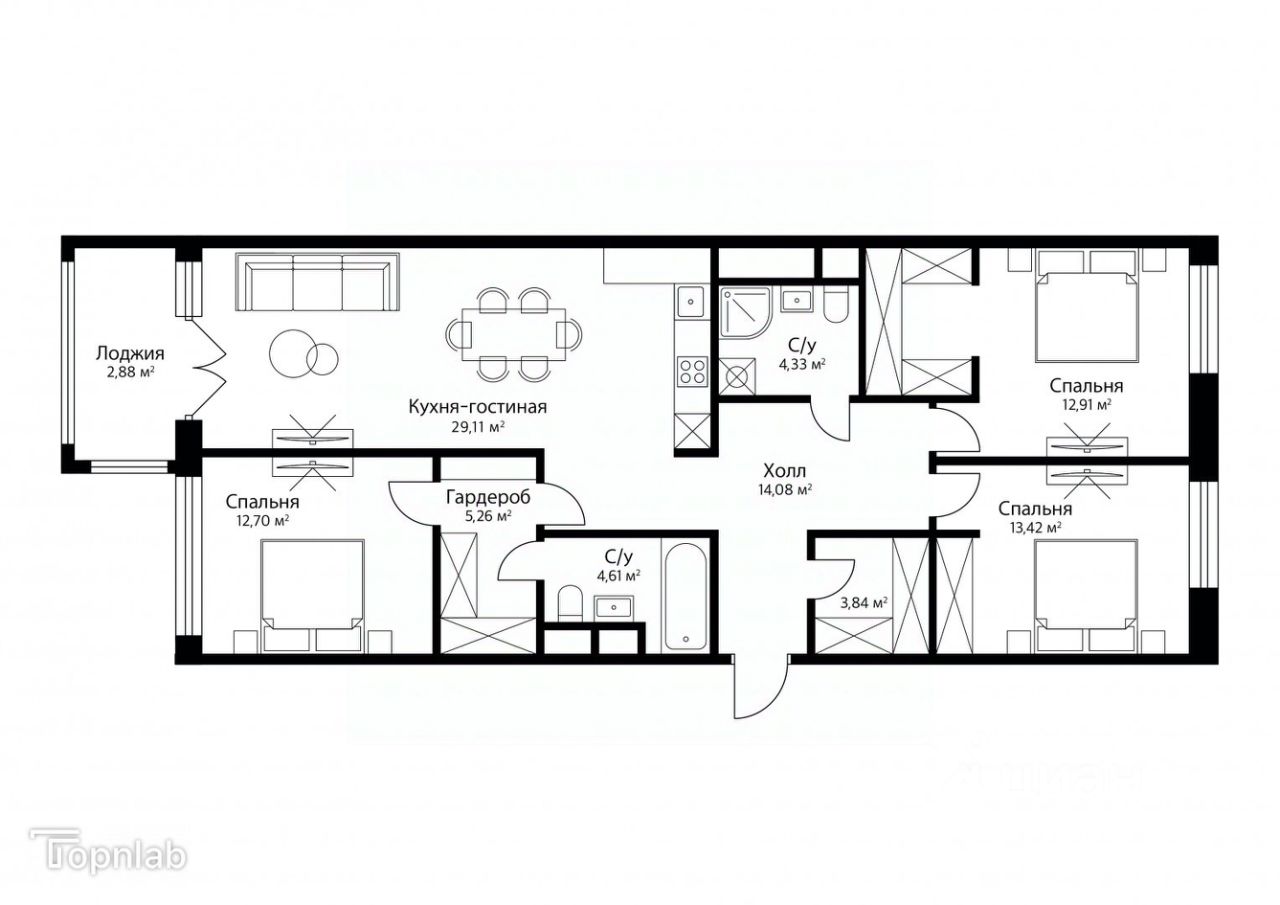 Продуманная функциональная планировка на 2 стороны с 3 изолированные спальни и кухня-гостиная. Одну из которых можно оборудовать как мастер спальню со своей гардеробной и ванной комнатой. Две ванные комнаты, которые уже построены из кирпичей. Квартиры очень теплые!