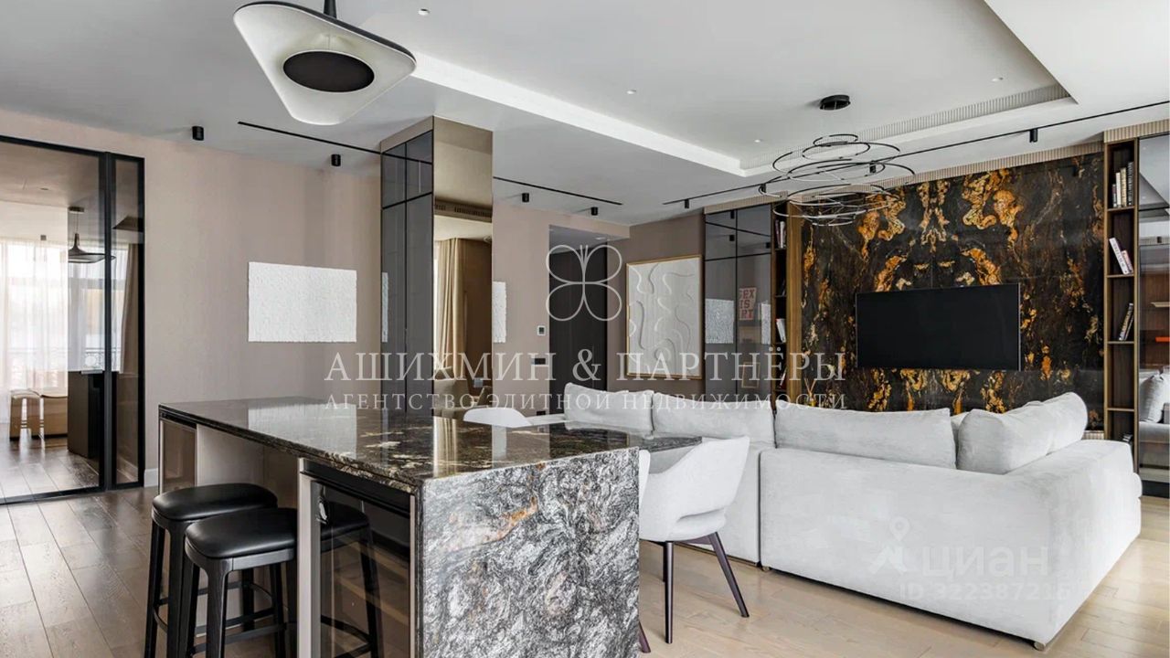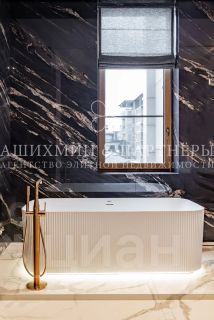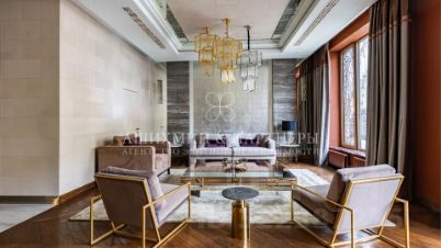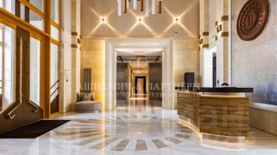 Квартира полностью готова к проживанию. Кухня укомплектована бытовой техникой Miele. В ванных комнатах установлены теплые полы и современная сантехника Abber. Для отделки использованы высококачественные материалы, мрамор и натуральный камень.