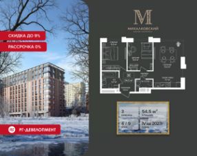 Продаётся 3-к квартира 54,5 кв.м. в ЖК "Михалковский" на 4-м этаже 9 этажного дома.