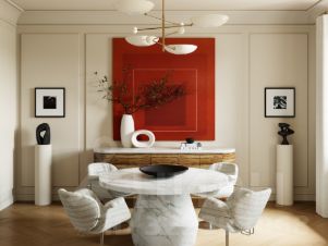 Просторная светлая квартира площадью 189,8 кв. м. с окнами на две стороны света. Окна кухни-гостиной смотрят во внутренний двор, из спален открывается вид на канал с фонтанами. Продуманная планировка позволяет разместить три спальные комнаты с отдельными санузлами, гардеробными и постирочной.