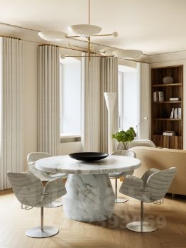Квартира площадью 188 кв. м. с окнами на две стороны света. Окна кухни-гостиной смотрят на уютную внутреннюю территорию. Продуманная планировка позволяет разместить три просторные спальные комнаты с отдельными санузлами и гардеробными, кабинет, постирочную и кухню-гостиную 48 м2.