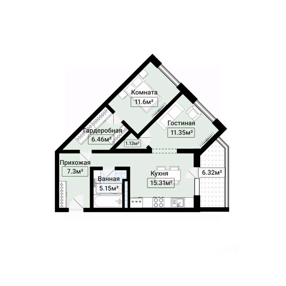 квартира свободна и готова к заселению — ключи получите сразу после оплаты.