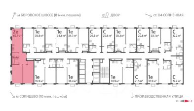 Комплекс располагается в 5 минутах ходьбы от станции метро "Солнцево" и в шаговой доступности от железнодорожной станции "Новопеределкино".