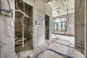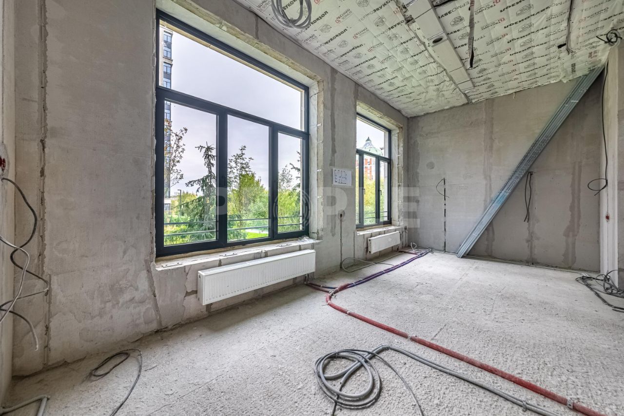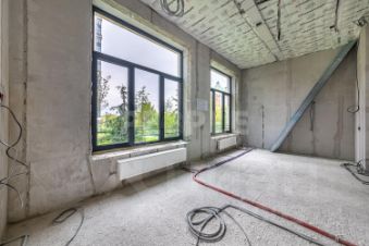 Квартира уже подготовлена к отделочным работам: возведены стены, разведена вся электрика, выполнена шумоизоляция потолка, установлена система вентиляции и потолок из гипсокартона. Из окон открывается великолепный вид на прогулочную зону у реки, что делает это место по-настоящему уникальным.