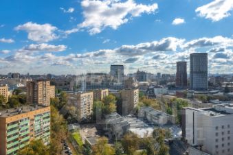 В квартире предусмотрены просторная кухня-гостиная 95 м², мастер-спальня 25,6 м², две дополнительные спальни 18,2 м² и 18,3 м². Из панорамных окон открывается завораживающий вид на Москву с высокого этажа — вся столица как на ладони,два санузла, гардероб.
