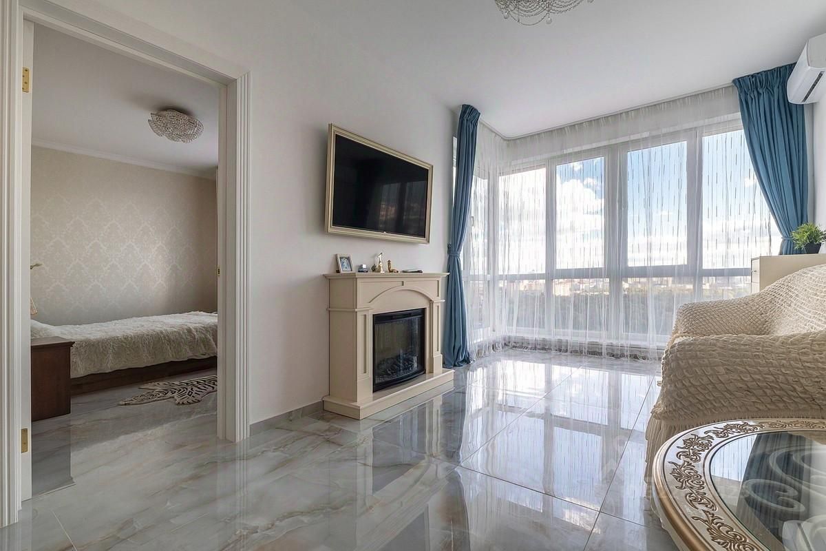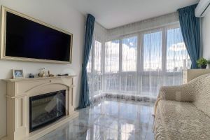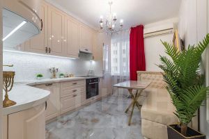 Высокие потолки, превосходящие уровень других квартир этого дома, придают пространству особую легкость и ощущение простора. Вся квартира оборудована мраморным полом, который подчеркивает изысканность интерьера. Ремонт свежий, выполненный для себя с использованием качественных материалов.