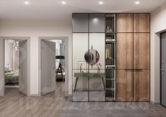 - Smart+ (современный стиль) - нейтральная цветовая гамма с использованием бетонных фактур и темного керамогранита, керамическая плитка до потолка в ванной и санузле.