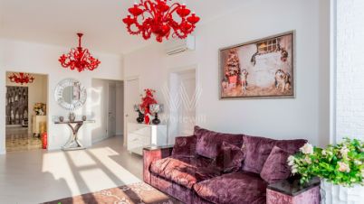 Продуманы различные сценарии освещения — дизайнерские люстры, настенные светильники и споты. Функциональная планировка включает кухню-гостиную с обеденной зоной, вторую гостиную, пять спален, кабинет, санузлы, гардеробные, три балкона, холл. Окна ориентированы на три стороны света, открываются виды на благоустроенную территорию комплекса и тихий переулок.