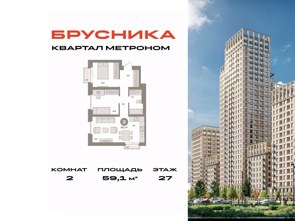 Квартира с кухней-гостиной и двумя спальнями в квартале "Метроном". Особенности планировки: французский балкон, вид во двор, предчистовая отделка, балкон.