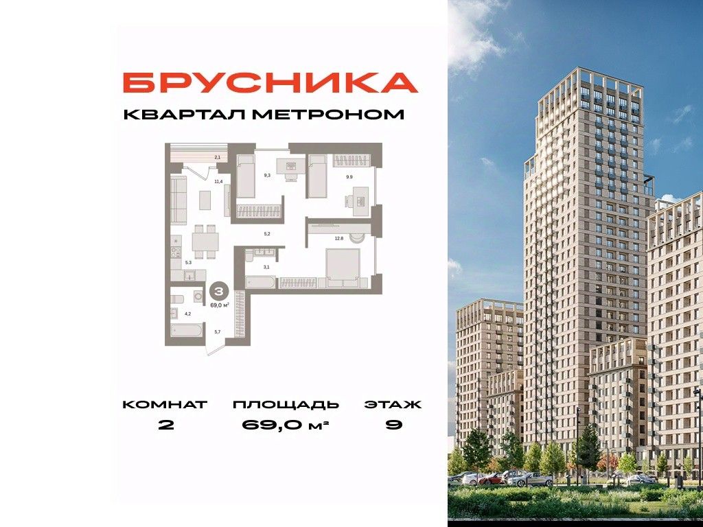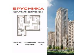Квартира с кухней-гостиной и двумя спальнями в квартале "Метроном". Особенности планировки: ипотека 8%, гардеробная, вид во двор, лоджия, предчистовая отделка, мастер-спальня.