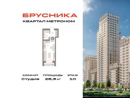 Студия в квартале "Метроном". Особенности планировки: вид во двор, лоджия, предчистовая отделка. квартиры в нашей базе: КВМ-КВМ01-5-5.10.9.