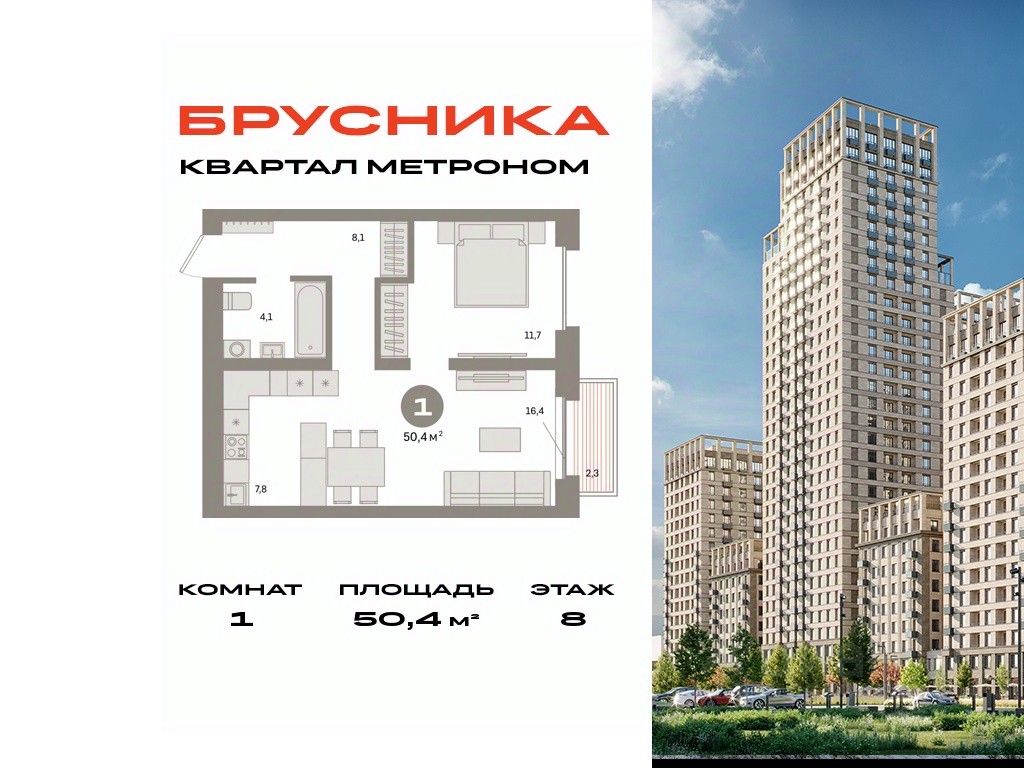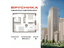 Квартира с кухней-гостиной и одной спальней в квартале "Метроном". Особенности планировки: ипотека 8%, предчистовая отделка, балкон.
