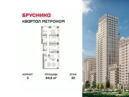 Квартира с кухней-гостиной и тремя спальнями в квартале "Метроном". Особенности планировки: второй санузел, французский балкон, предчистовая отделка, балкон.