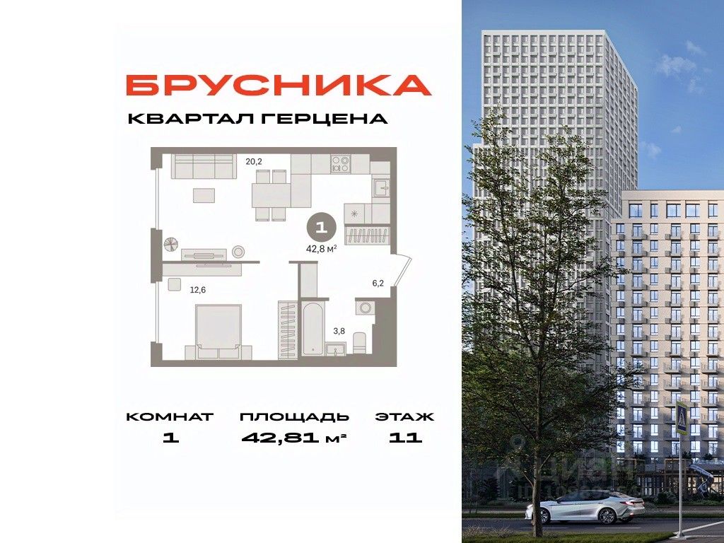 Квартира с кухней-гостиной и одной спальней в квартале Герцена. Особенности планировки: вид во двор, предчистовая отделка.