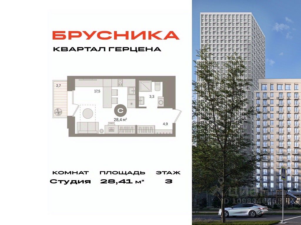 Студия в квартале Герцена. Особенности планировки: предчистовая отделка, балкон.