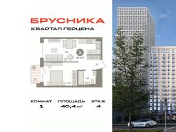 Квартира с кухней-гостиной и одной спальней в квартале Герцена. Особенности планировки: вид во двор, предчистовая отделка, балкон.