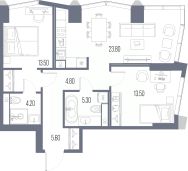 Продается 2-комн. квартира с предчистовой отделкой в ЖК "Северный Порт" на 9 этаже. Общая площадь: 70.7 кв.м., жилая: 27 кв.м., площадь просторной кухни-столовой: 23.8 кв.м. Квартира угловая, очень светлая, естественная вентиляция при открытии окон. В квартире два совмещенных санузла. Высота потолков 3.15 м.