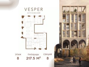 Продается 4-комнатная квартира без отделки в корпусе 8.2 общей площадью 217,5 кв.м. на 8 этаже.
