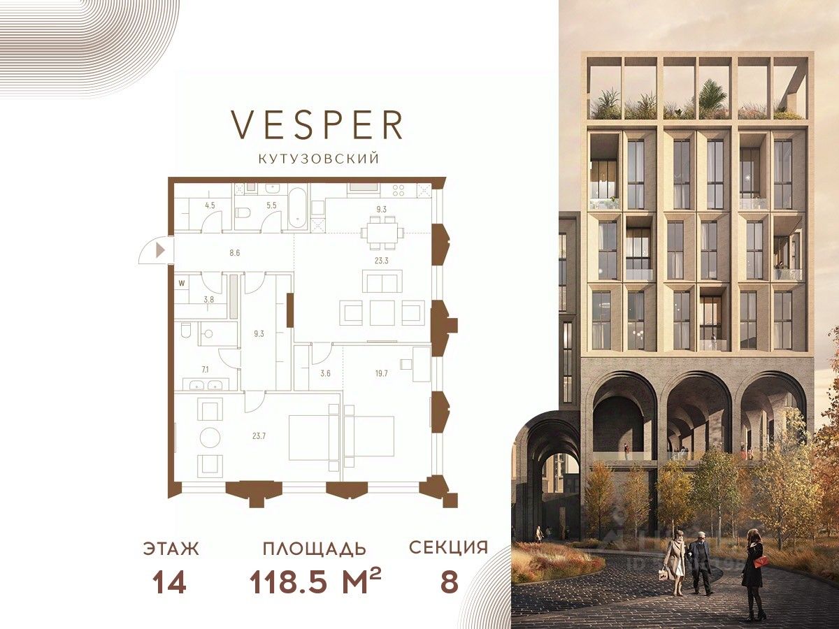 Продуманная приватная инфраструктура, собственный ландшафтный парк, близость магазинов и ресторанов делают Vesper Кутузовский достойным выбором для самых взыскательных клиентов: как для тех, кто любит уединение, так и для резидентов, которые стремятся быть в центре событий.