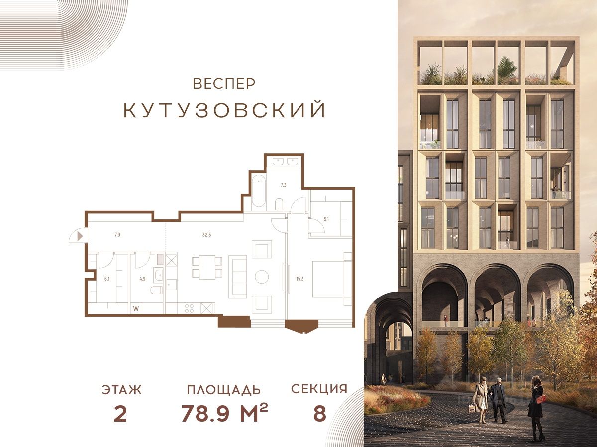 Продается 1-комнатная квартира, в корпусе 8.2 общей площадью 78,9 кв.м. на 2 этаже.