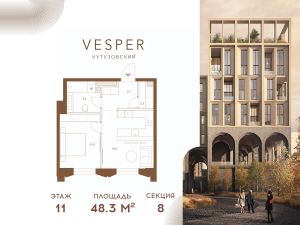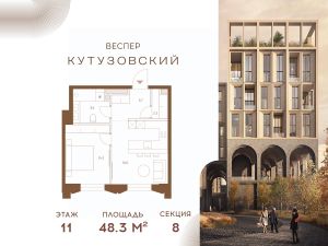 Продается 1-комнатная квартира без отделки, в корпусе 8.2 общей площадью 48,3 кв.м. на 11 этаже.