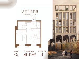 Продается 1-комнатная квартира без отделки, в корпусе 8.2 общей площадью 48,3 кв.м. на 12 этаже.