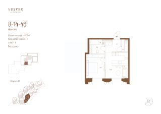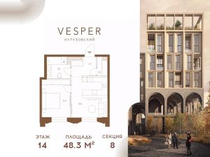 Продается 1-комнатная квартира без отделки, в корпусе 8.2 общей площадью 48,3 кв.м. на 14 этаже.