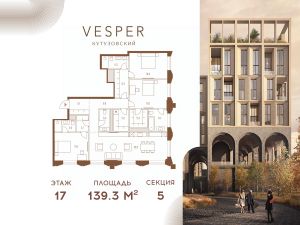 Продается квартира с 3-мя спальнями без отделки в корпусе 5.2 общей площадью 139,3 кв.м. на 17 этаже.