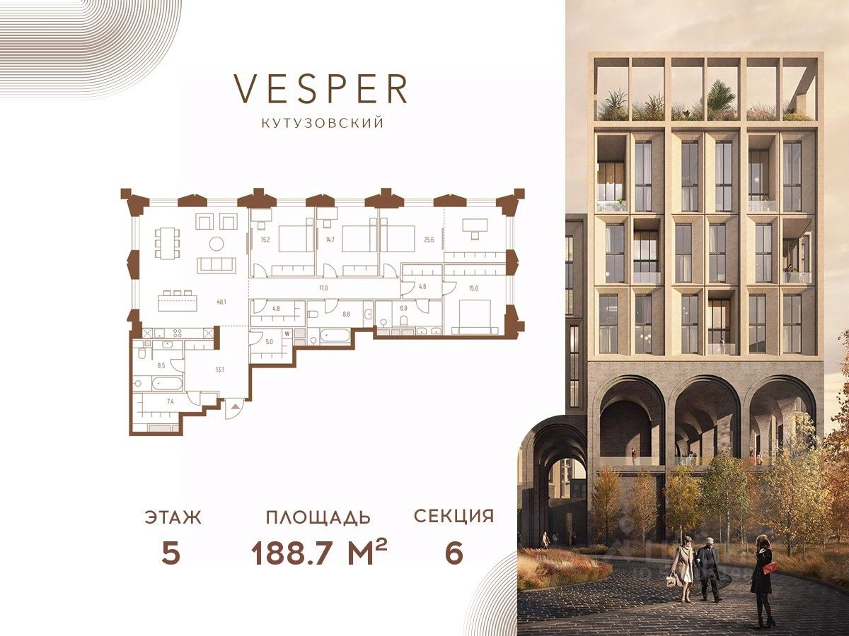 Продуманная приватная инфраструктура, собственный ландшафтный парк, близость магазинов и ресторанов делают Vesper Кутузовский достойным выбором для самых взыскательных клиентов: как для тех, кто любит уединение, так и для резидентов, которые стремятся быть в центре событий.