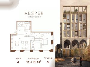Продается квартира 2-спальнями без отделки, в корпусе 9.1 общей площадью 110.6 кв.м. на 4 этаже.