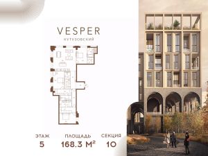 Продаётся 3-комнатная квартира в строящемся доме (Vesper Кутузовский), срок сдачи: I-кв. 2028, общей площадью 168.3 кв.м., на 5 этаже. Жилой комплекс премиум-класса между набережной Тараса Шевченко и Кутузовским проспектом/