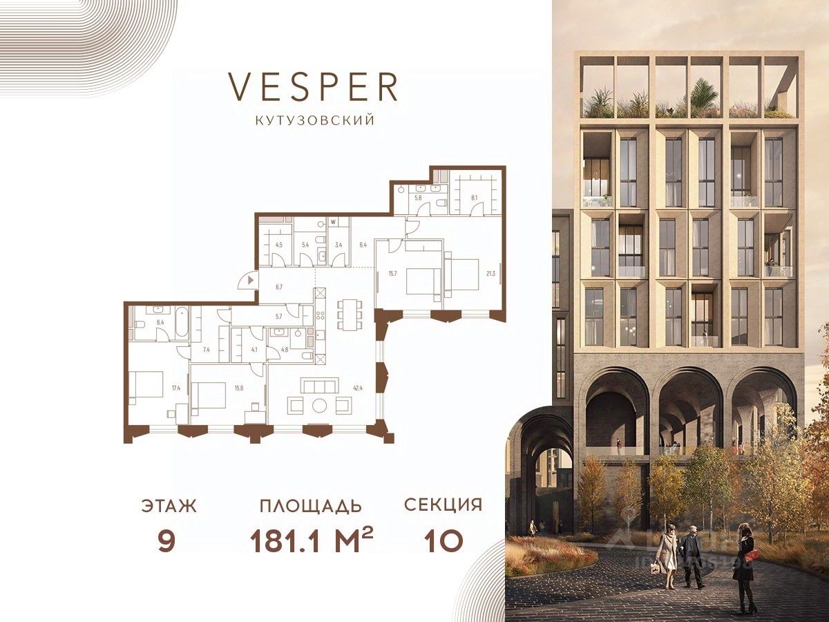 Продается квартира 4-спальнями без отделки, в корпусе 10.1 общей площадью 181,1 кв.м. на 9 этаже.