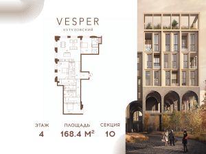 Продается квартира 3-спальнями без отделки, в корпусе 10.1 общей площадью 168,4 кв.м. на 4 этаже.