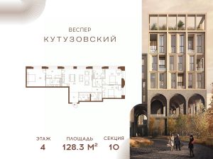 Продается квартира 3-спальнями без отделки, в корпусе 10.2 общей площадью 128,3 кв.м. на 4 этаже.