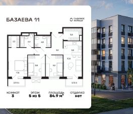 Продается квартира в ЖК Шаховская с 3 спальнями на 5 этаже 5 этажного дома. Общая площадь: 84.9 кв.м. Высота потолков 2.72 м. Срок сдачи 2 квартал 2027 г. Эскроу-счет. Застройщик ГК "Садовое кольцо".