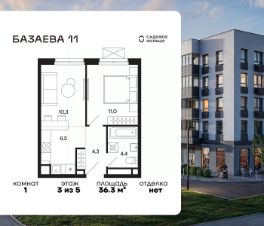 Продается квартира в ЖК "Базаева, 11" с 1 спальней на 3 этаже 5 этажного дома. Общая площадь: 36.3 кв.м. Высота потолков 2.72 м. Срок сдачи 2 квартал 2027 г. Эскроу-счет. Застройщик ГК "Садовое кольцо".